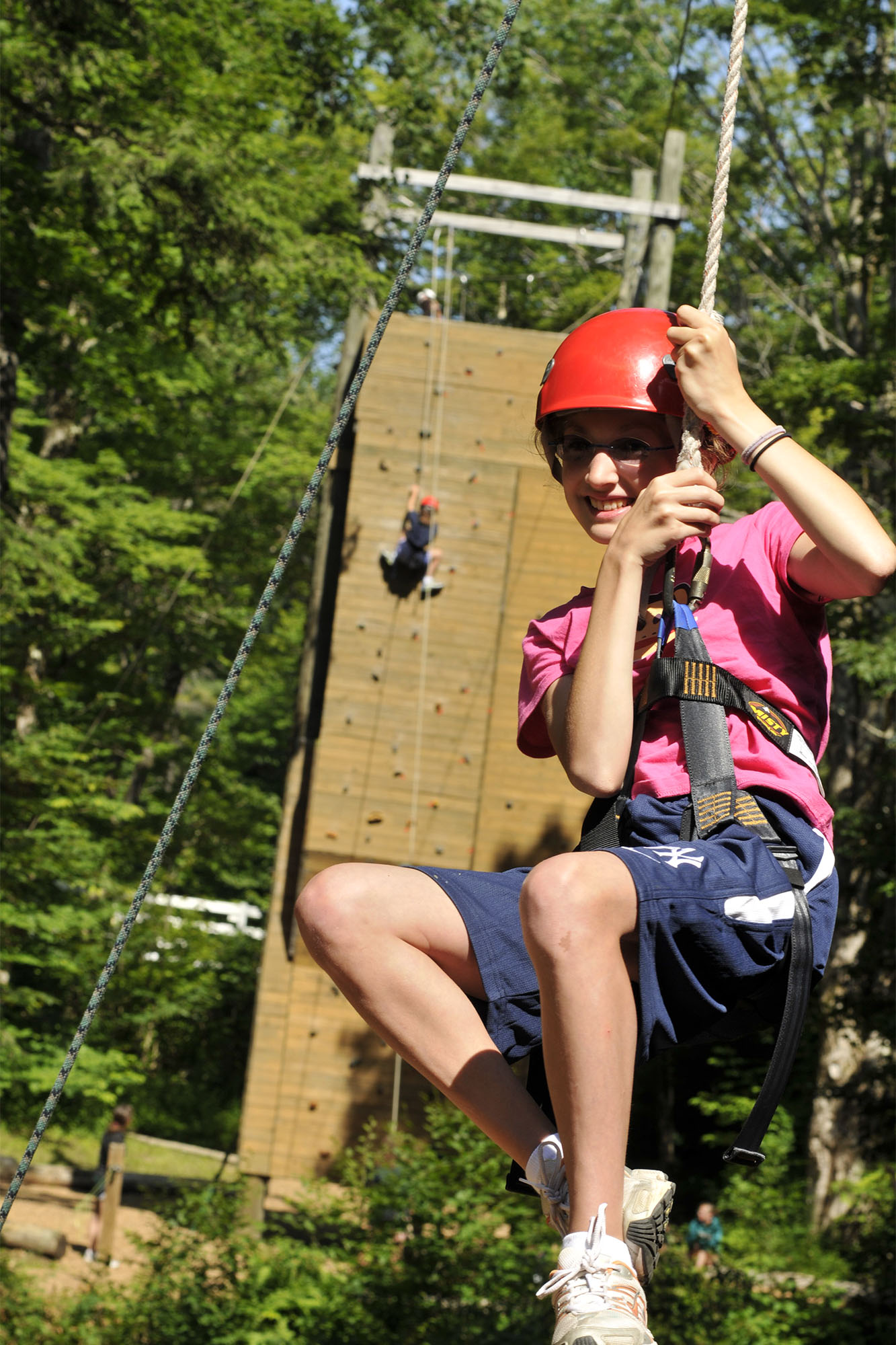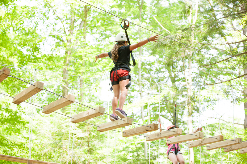When you reach the top of our 50-foot, four-sided Climbing Wall you’re just getting started. Once there, you can strap onto Zip Line #1 and take a fast ride 375 feet over roaring Welch Brook - or take an exciting detour via the integrated high ropes course towards Zip Line #2! Wow…what a ride!